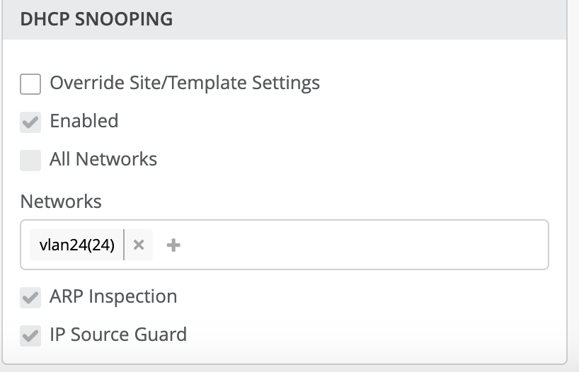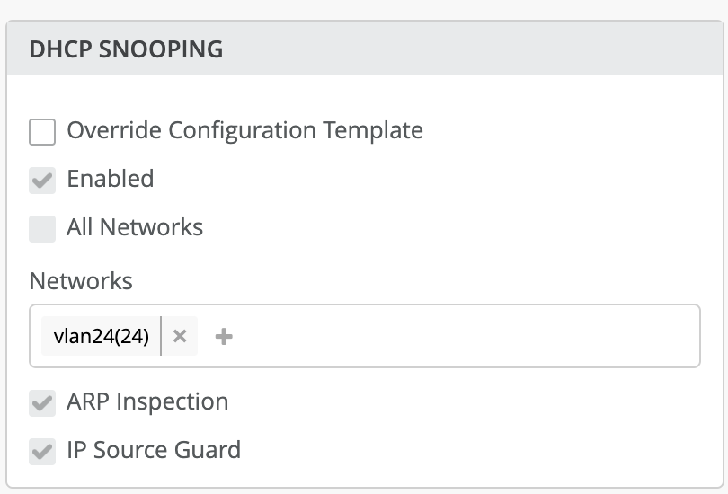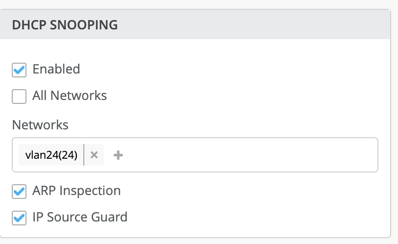 Dans l’exemple ci-dessous, nous activons le DHCP snooping pour le réseau unique → Vlan24 (vlan-id-24).