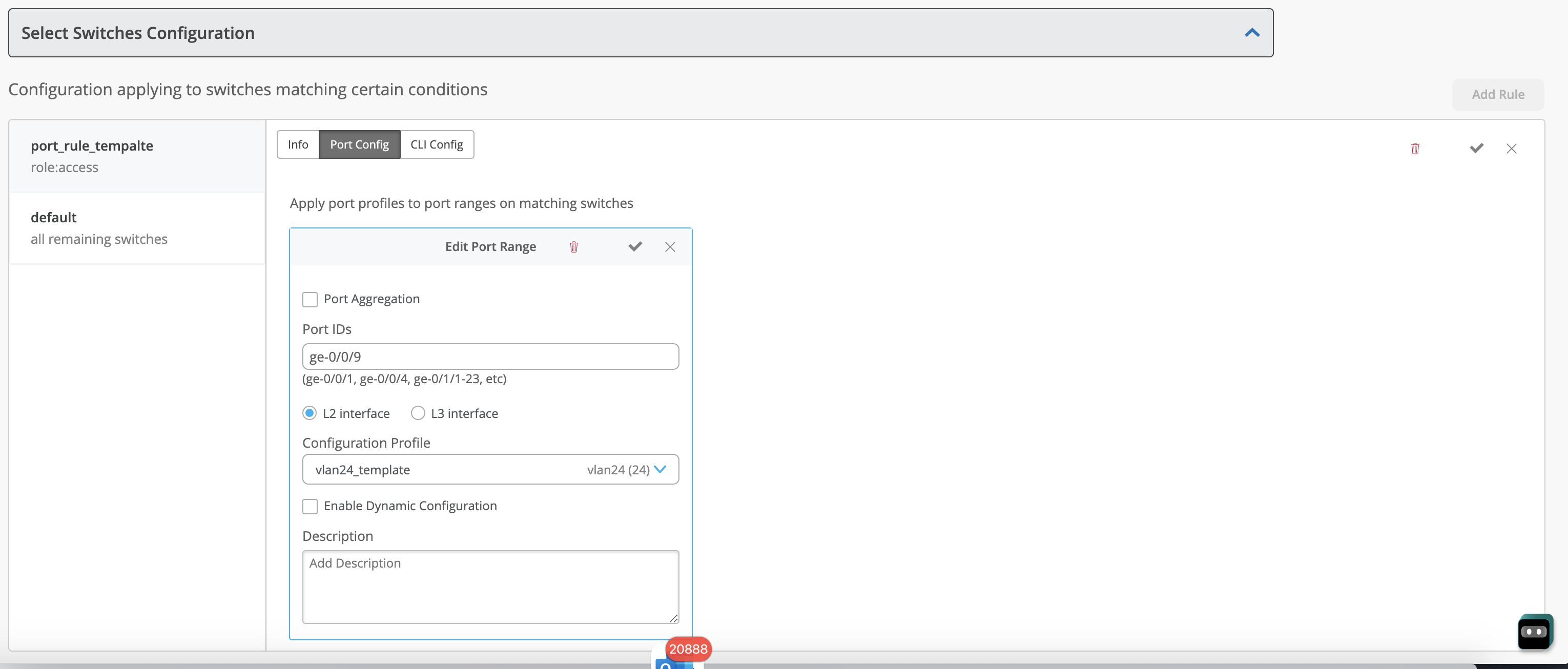 b.) Network → Switch Configuration page