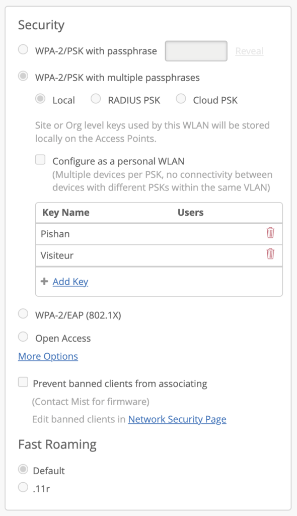 En résumé l’utilisation du MPSK permet d’avoir la simplicité d’un PSK tout en identifiant chaque utilisateurs ou un groupe d’utilisateurs sans forcément ajouter une infrastructure additionnelle. On se soustrait de toute la complexité, tout en sécurisant son réseau.