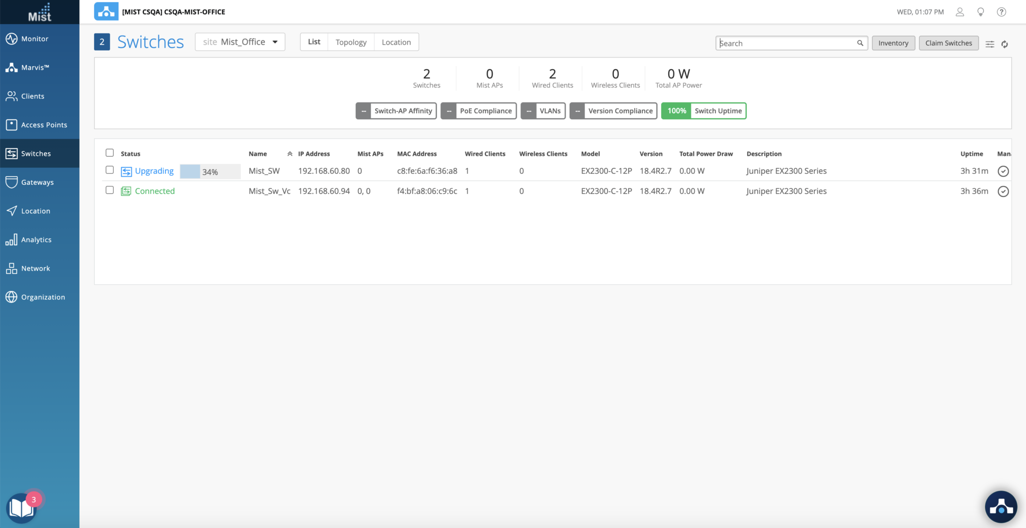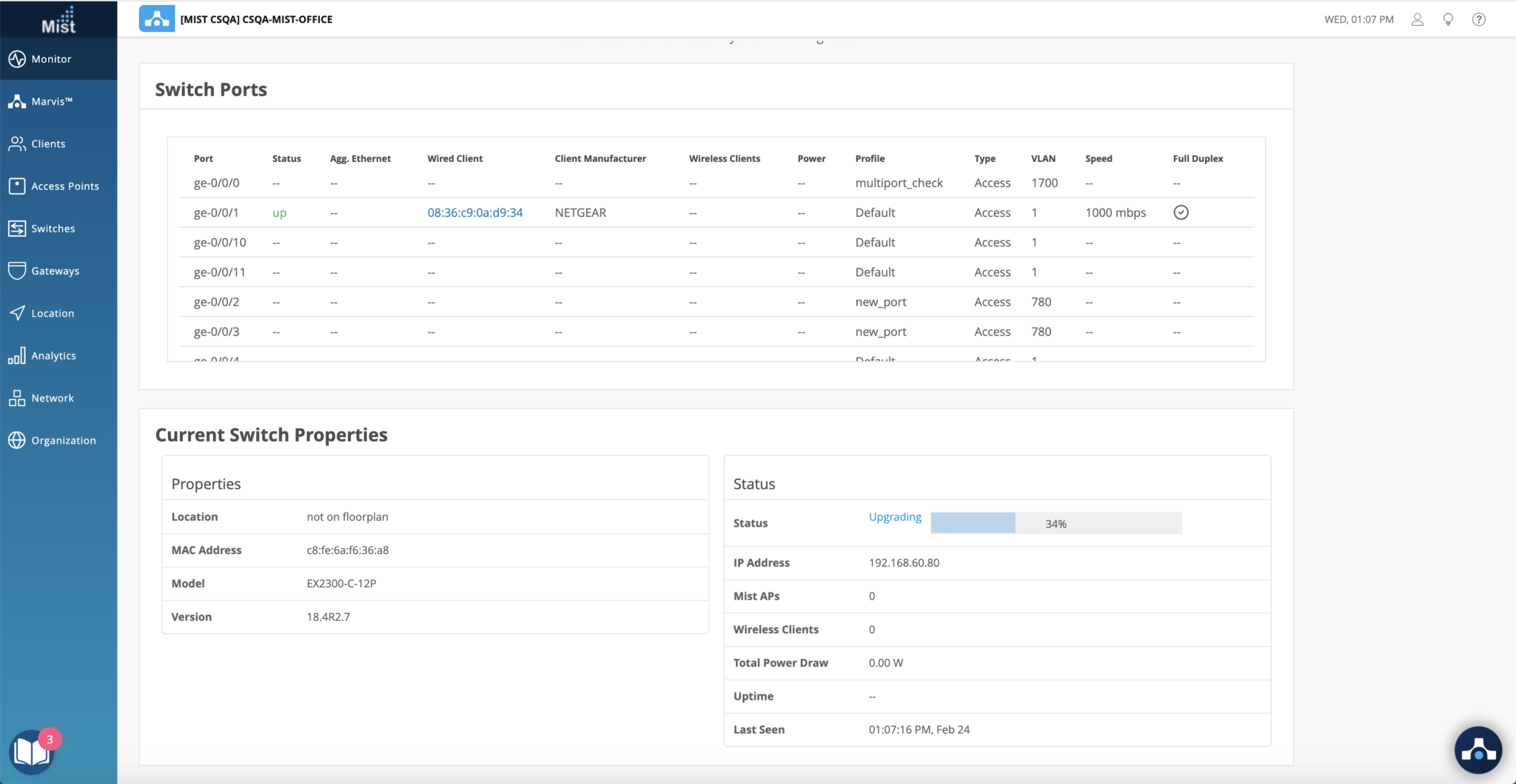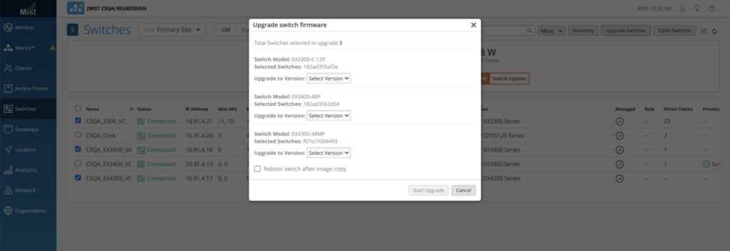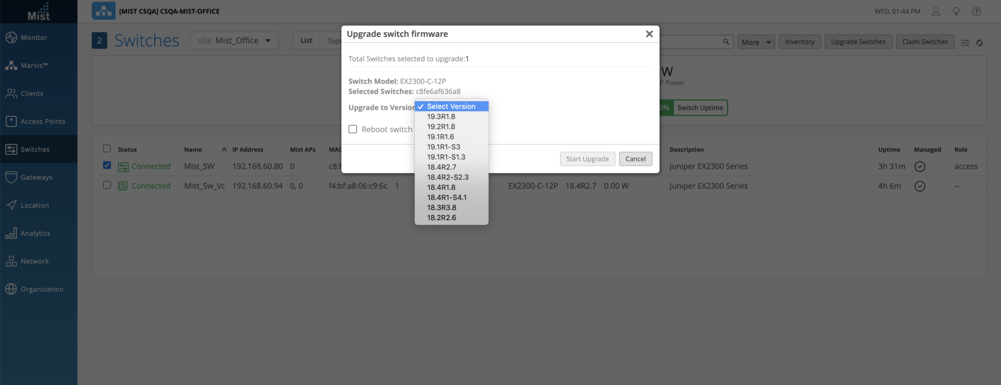 Avec Mist, nous avons la possibilité de mettre à jour les commutateurs directement depuis le cloud.