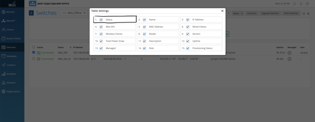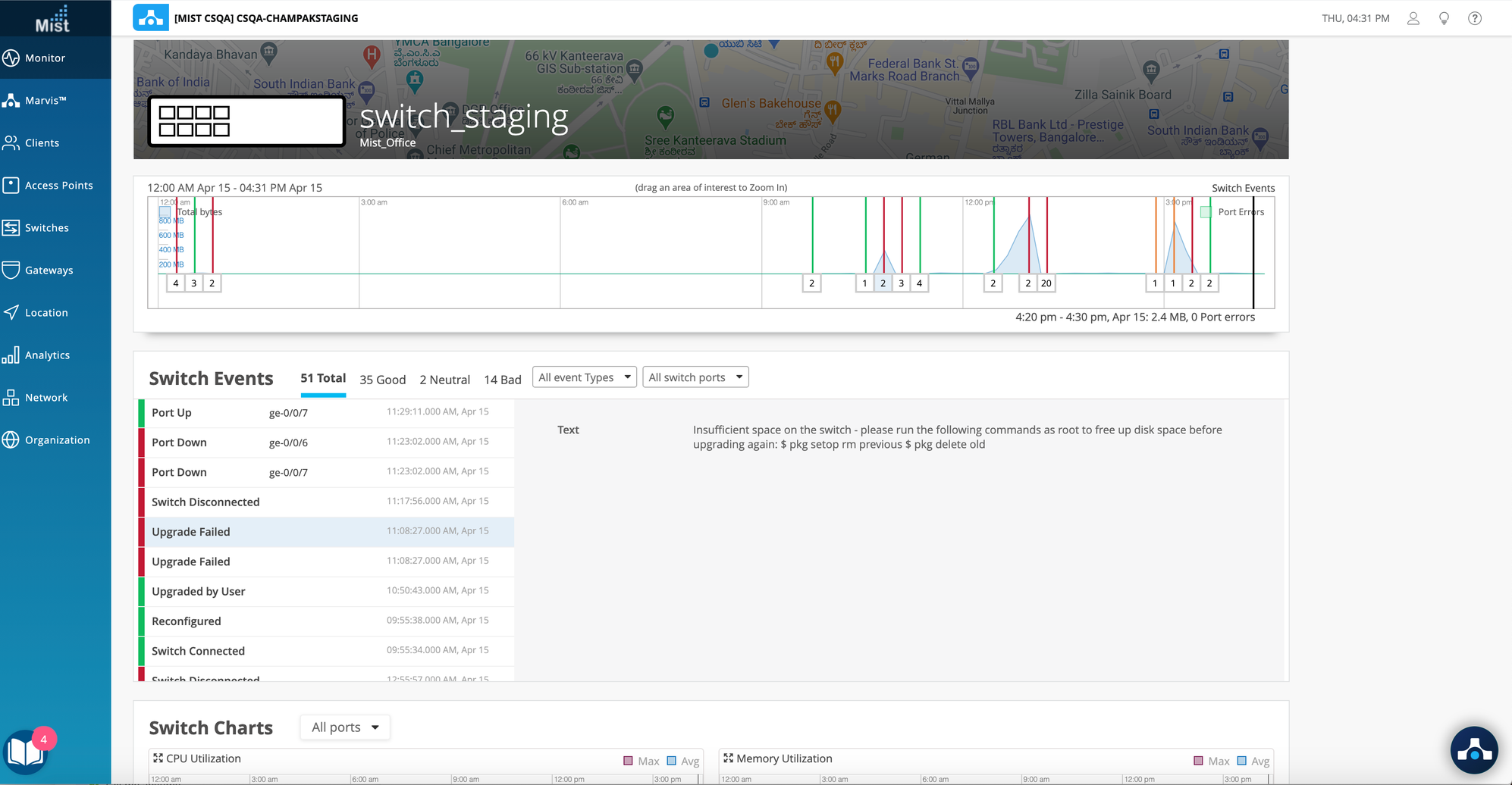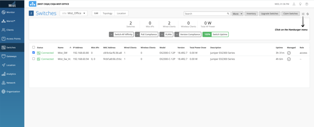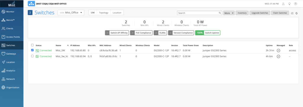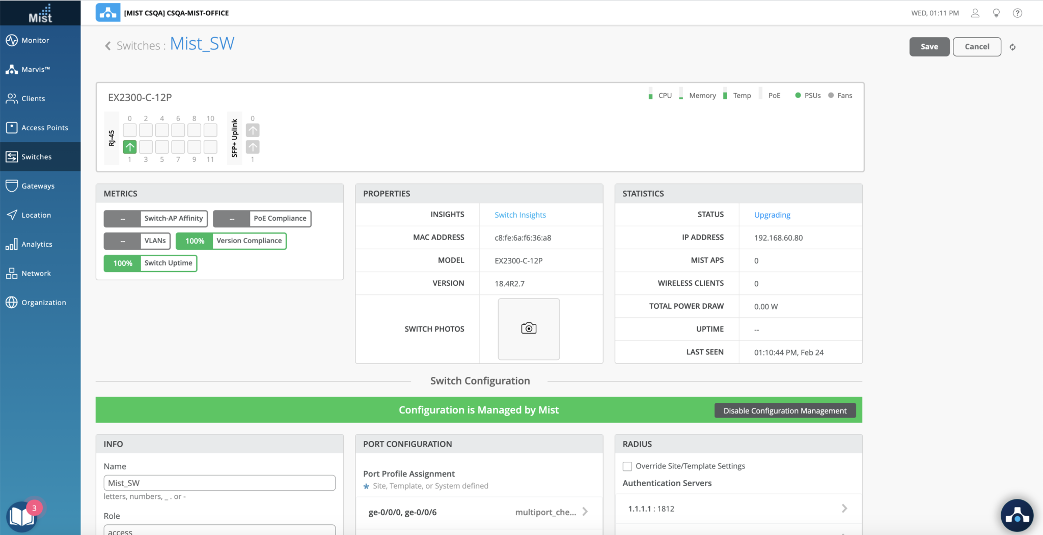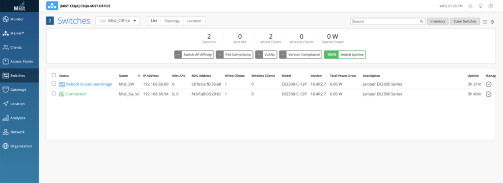Avec Mist, nous avons la possibilité de mettre à jour les commutateurs directement depuis le cloud.
