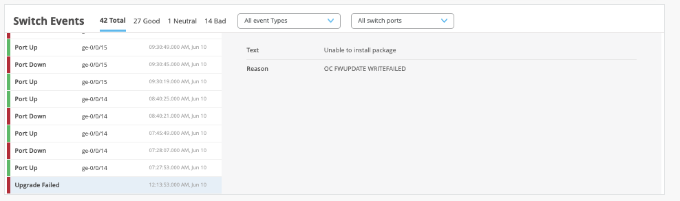 Il existe quelques cas où la mise à niveau du commutateur peut échouer. Les événements d’échec sur la page Insights fourniront plus de détails sur la cause première pour référence.